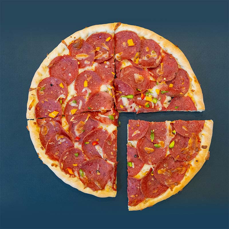 ژامبون پپرونی ، سس مخصوص ، پنیر میکس ، قارچ ، فلفل دلمه ، هالوپینو